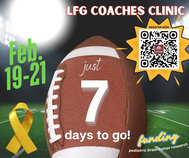 100+ College and Pro Coaches donate their time and presentations in this event that supports Lauren's First and Goal Foundation to fund pediatric brain tumor research and cancer services.